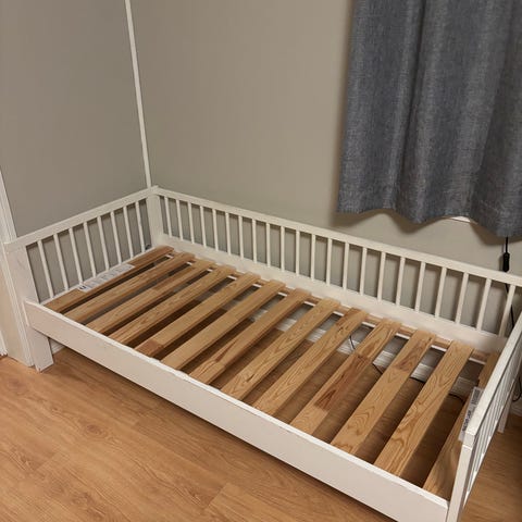 IKEA juniorseng i tremateriale. Passer for barn og kan brukes som juniorseng.