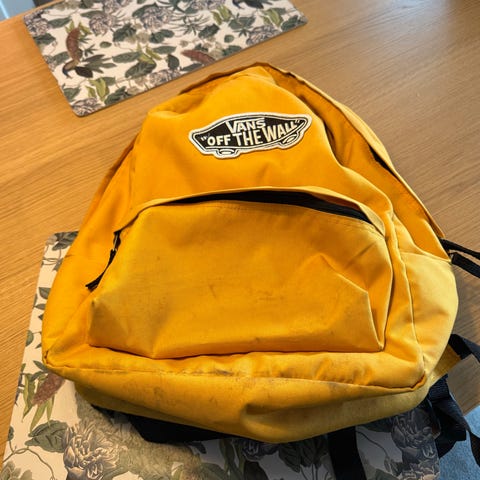 Solid veske i kraftig stoff. To store rom + innvendig og utvendig lomme med glidelås. Kraftig hempe