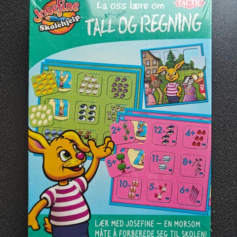 Spillet inkluderer brett, brikker og kort, og er designet for å hjelpe barn med å forberede seg til skolen gjennom morsomme aktiviteter.