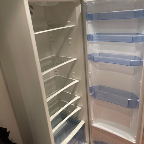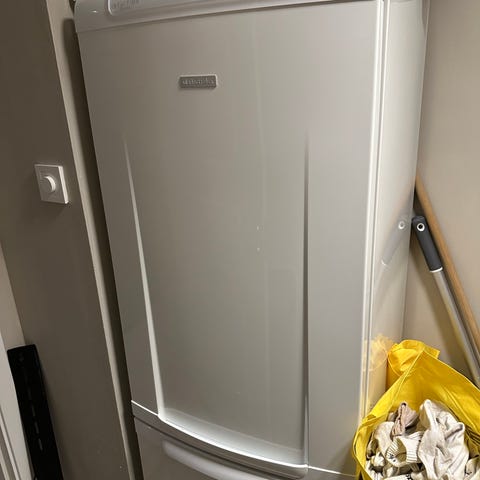 Indesit kombiskap med kjøleskap og fryser i samme enhet. Hvitt ytre med flere hyller og skuffer for oppbevaring. To overfladiske skader i lakken (se foto) Passer til vanlig husholdningsbruk.