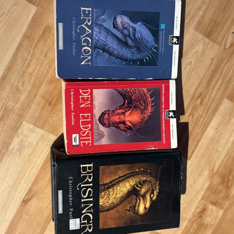 Har også Eragon (bok 1) i pocket på engelsk som kan følge med dersom du ønsker. Den er ganske slitt, men ingenting galt med den.