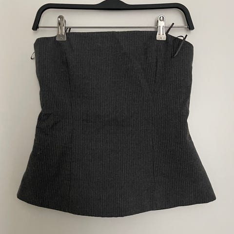 Zara stroppløs topp i størrelse M. Toppen har et mønster ligner avis. Aldri brukt.