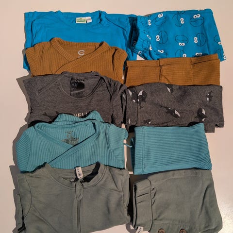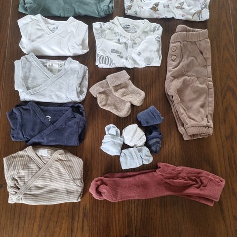 Pent brukt klespakke i str 62 bestående av: