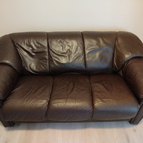 Skinnsofa 3-seter og 2-seter, bord, speil og teppe selges samlet for 5000kr. Røykfritt hjem. Må hentes på Askøy.