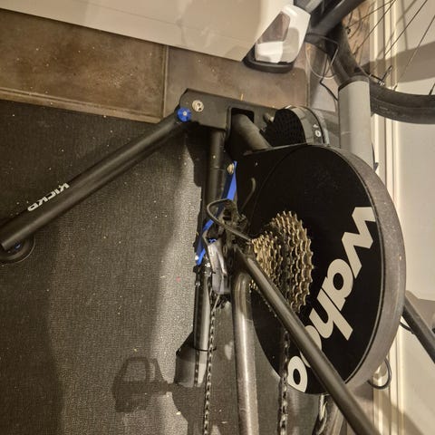 Wahoo KICKR sykkelrulle med Zwift Cog selges fordi den ikke brukes lengre. Har en Wahoo matte som følger med som kan brukes til underlag, for å beskytte gulvet ditt. Har også 3D printet føtter til den som man kan sette tennisballer i, som gir økt komfort på en innendørstrener (syklingen får litt mer dynamisk bevegelse)