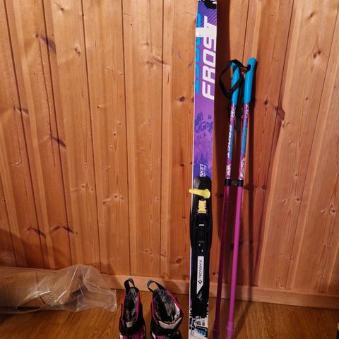 Smørefrie ski, staver og sko til barn ca 5-7 år selges samlet. Godt brukt, men fungerer bra, skoene er varme og gode.
