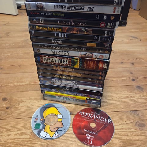 Samling av diverse DVD-filmer i forskjellige sjangere og titler. Filmer leveres i original emballasje. Passer for filminteresserte og samlere.