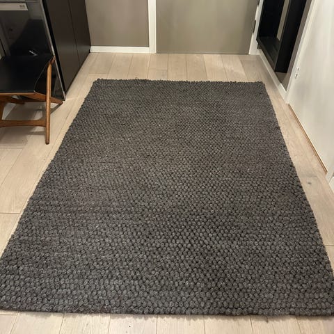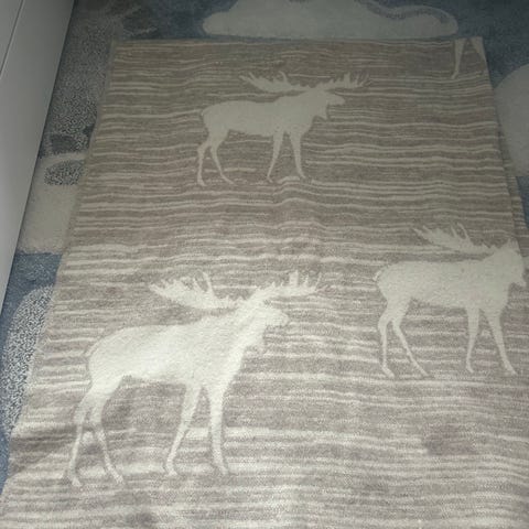Blått ullpledd gis bort mot henting