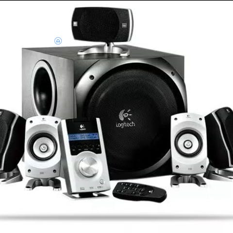 Selger et Logitech Z523 2.1 høyttalersett med stor og potent subwoofer.
