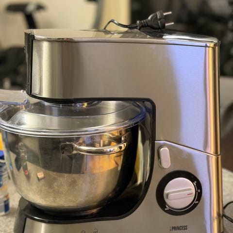 Princess kjøkkenmaskin med rustfri stålbolle. Inkluderer deigkrok og visp. Egnet for baking og matlaging.