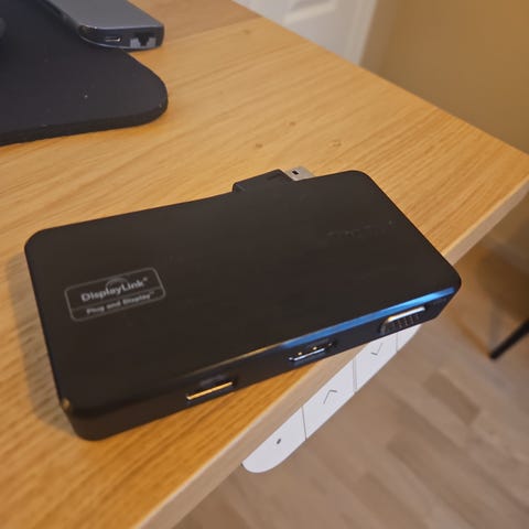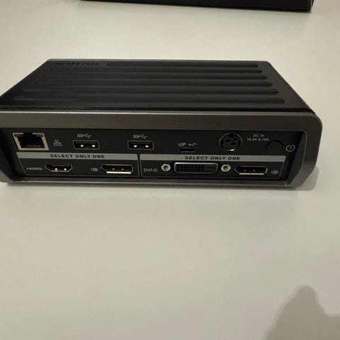 dokkingstasjon med flere tilkoblingsmuligheter inkludert USB, DVI, HDMI og Ethernet. Enheten har også lydinngang og -utgang, samt en kompakt design for enkel tilkobling til bærbare datamaskiner.