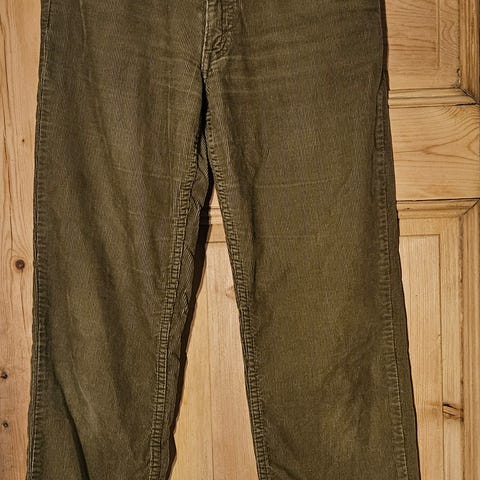 Fin og lite brukt bukse i god kvalitet (Dickies). Fargen er beige/lysgrønn, bilde nr. 4 og 5 viser fargen best. Ser en liten flekk, forsvinner nok ved vask. Lommer i front og bak, noe elastisk i livet. Str. 36/32.