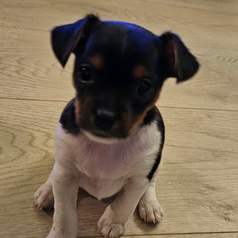 Ho er oppvokst på stua I lag med andre hunder og søsken.