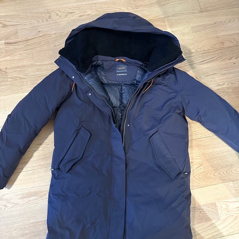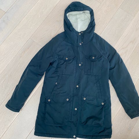 Jakken har noen bruksmerker på innsiden av ermene (se siste bildet), men dette kan sannsynligvis fjernes med en vask☺️ Ellers ingen bruksmerker.