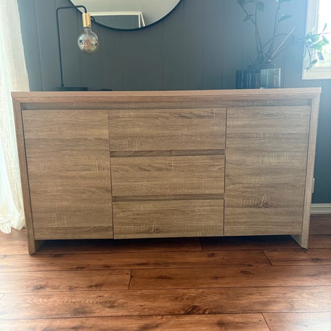 Populær skjenk fra Jysk selges. Det er den største av de to størrelsene hos Jysk, men samtidig oppleves den ganske «nett» til sammenligning med andre skjenker på denne størrelsen.