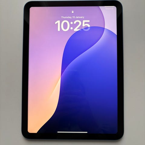 I god stand, men har noen små skraper ned til høyre på skjermen. iPaden har også en minimal bøy (se bilde). Dette skjedde etter noen satt seg på den i sofaen. Har brukt iPaden flere år etter uten problemer. Eneste er hvis man bruker FaceTime og spiller spill samtidig så kan den restarte noen ganger. Selges derfor billig. Selges med deksel i lilla