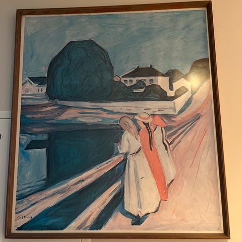 Edvard Munch maleri print/poster (Damene på broen) i sort metallramme 41x41 cm.