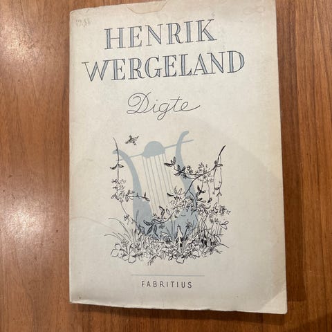 Dikt og fragmenter i utvalg. Cappelens Forlag, 1946. Smussomslaget er gulnet, men boka er i svært god stand.