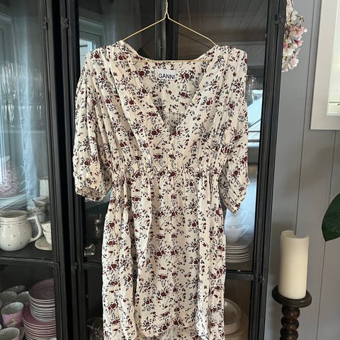 Ganni Sommerkjole i størrelse S, laget av viskose. Kjolen har rosa farge med et blomstermønster.