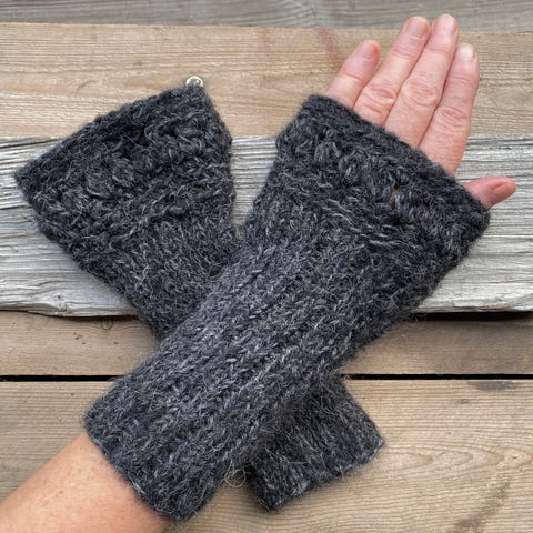 Varme, myke og gode pulsvanter - håndstrikket i børstet alpakkaull/silke.