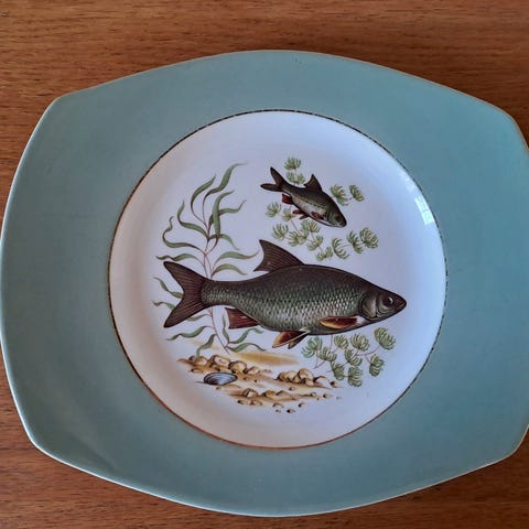 Selger en stilig 1960 talls tallerken fra Figgjo Flint Saturn Kirsten Dekor