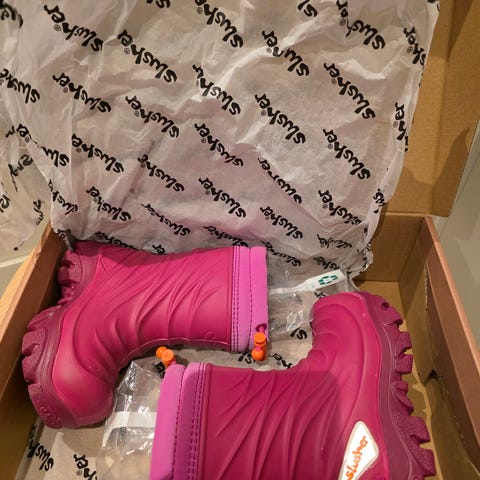 Slusher barnestøvler for jente i størrelse 23. Støvlene er lilla og har en slitesterk såle. Egnet for bruk i våte og kalde forhold, med et design som gir god beskyttelse og komfort. Skoene er kun brukt noen mnd og i god stand. Lette og gode støvler.