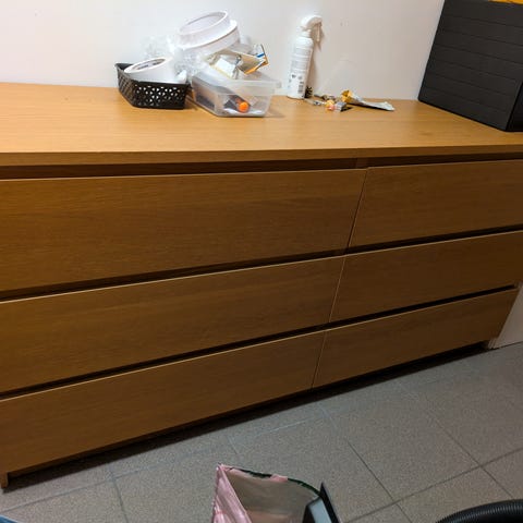 Bør strammes nederst til venstre, slik at skuffen nederst sklir optimalt.