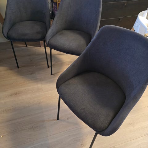 Selger 6 stk. Puter kan følge med om ønskelig. Selges for 300kr per stk eller samlet for 1500kr. Utgått farge. Godt brukt, men i fin stand. Veldig gode stoler å sitte i. Selges pga plassmangel.