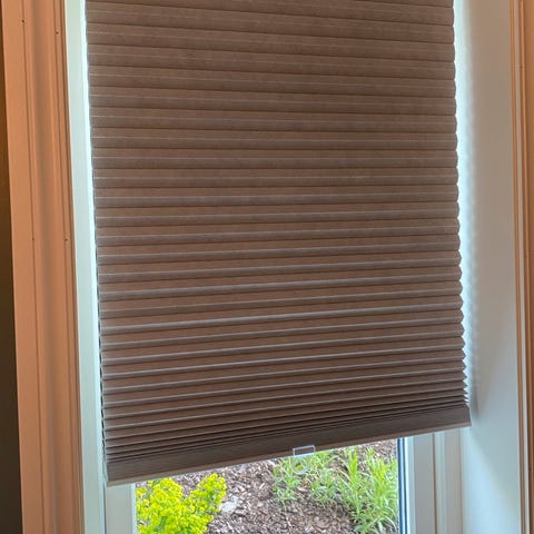 Gardinen er designet for å dekke vinduer med kvadratisk form og gir mulighet for lysregulering.