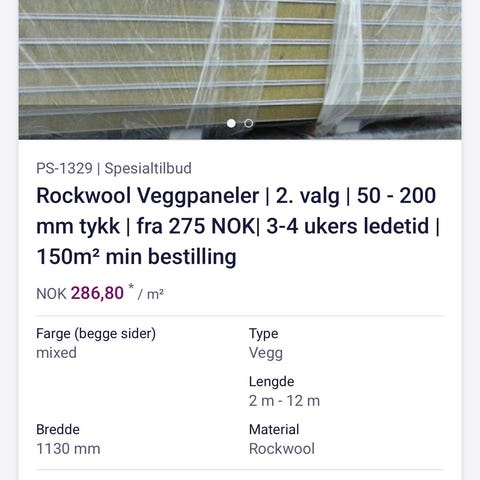 Rockwool isolasjon med svært gode lydisolerende egenskaper. Denne har kun vært midlertidig montert i tak, deretter tatt ned igjen – aldri vært i bruk utover inn/ut-montering. Ingen fuktskader, oppbevart tørt. Perfekt for deg som vil redusere støy mellom rom og etasjer. Totalt nok til ca. 62 m². Klar for henting.