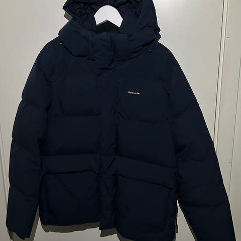 Holzweiler vinterjakke i størrelse XS, hvit farge og laget av dun. Jakken er designet for menn og egner seg til utendørs bruk i vinterforhold. Jakken har lommer og hette for ekstra beskyttelse mot kulde.