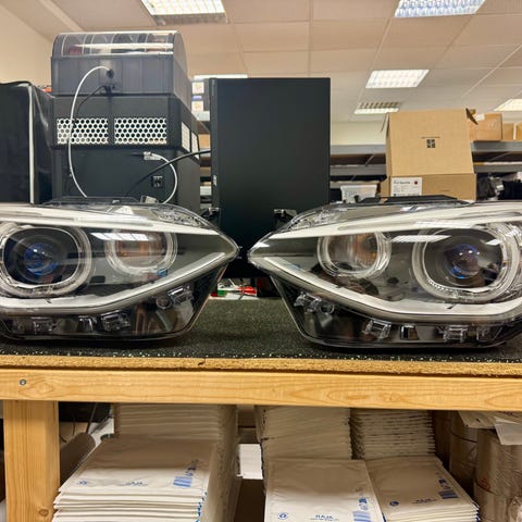 - 3 originale bmw frontlykter, alle 3 har vært på kræsjede biler, sprekker i glasset, men alt av xenon moduler, tms og pærer sitter på. Uvisst tilstand