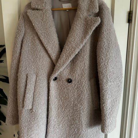 Va Vite ytterjakke i brun/beige farge, størrelse 40. Laget av 50 % ull, 40 % polyester og 10 % annet materiale. Jakken har dobbelspent knappelukking og er kun brukt en eneste gang, - den er dessverre blitt for stor for meg.