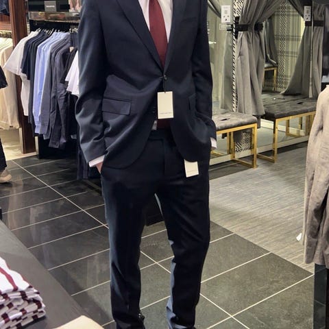 Pent brukt herredress fra These Glory Days, bestående av dressjakke og dressbukse.