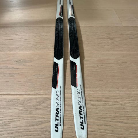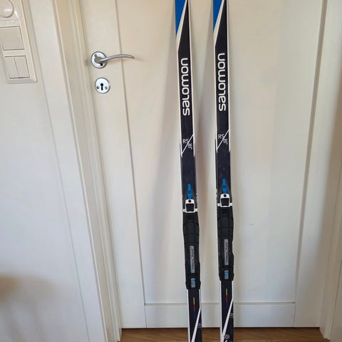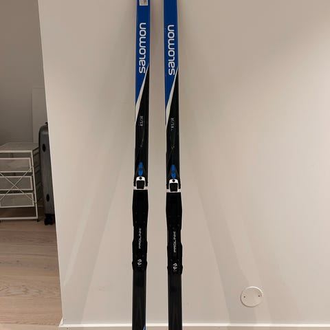 Selger et par Salomon skøyteski til junior med binding. Sålen er uten dype riper og vil bli preppet før overlevering.