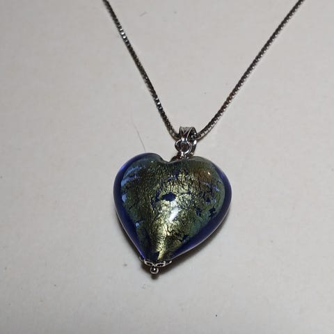 Vakkert kjede / Anheng i sølv med rødt glass-hjerte.