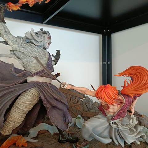 Bleach Ichigo Ulquiorra diorama kjøpt direkte fra Figurama Collectors. Figuren måler H45,5cm, B52cm, D39cm, og veier 16,5kg. Materiale: polystone, Diecast Metal, PVC og LED belysning. Strøken og stått i et røykfritt rom. Alt av tilbehør, art prints, original emballasje, eske, bruksanvisning og sertifikat følger med. På grunn av størrelse og vekt, så bør denne hentes. Men kan sendes på kjøpers regning og risiko. anime figur resin statue one punch man solo leveling