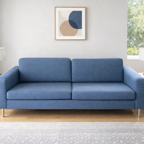 Det følger med to puter som vist på bilde, begge fra Bolia i samme stoff og farge som sofaen. Størrelse på de er 60x60 cm og 40x70 cm.