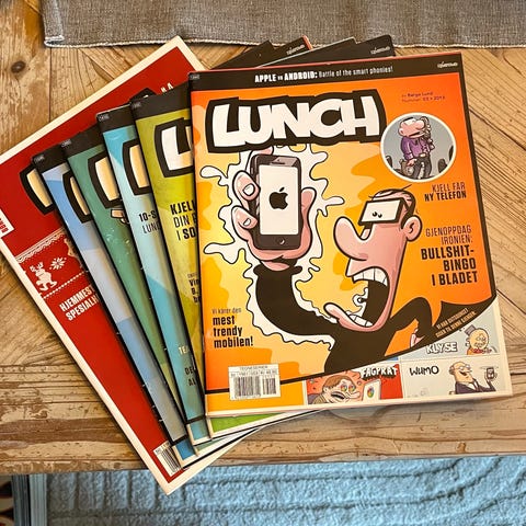 Lunch magasin utgave nr. 7,fra 2019 med tema "Back to Work". Inneholder tegneserier og illustrasjoner i farger. .