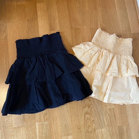 Selger to neo noir skjørt i str 32. Et rosa, har en liten flekk, nesten ikke synlig. Et skjørt i blått, fremstår som nytt. 250 kr pr skjørt.