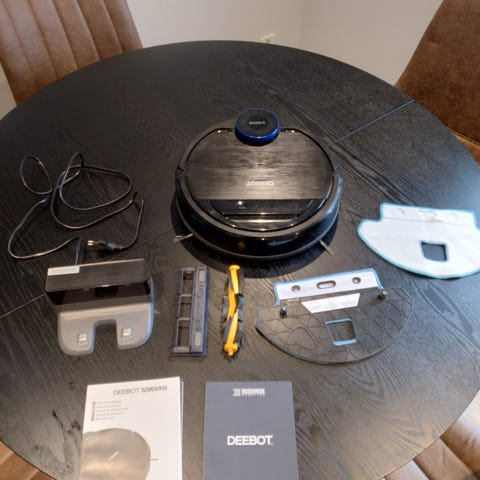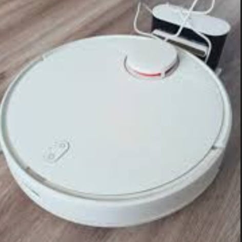 Xiaomi Roborock S5 robotstøvsuger i hvit farge. Leveres med ladestasjon og ekstra mopp. Designet for automatisert rengjøring av gulv.