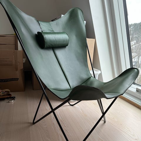 Pent brukt Decotique Butterfly stol i skinn.