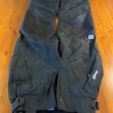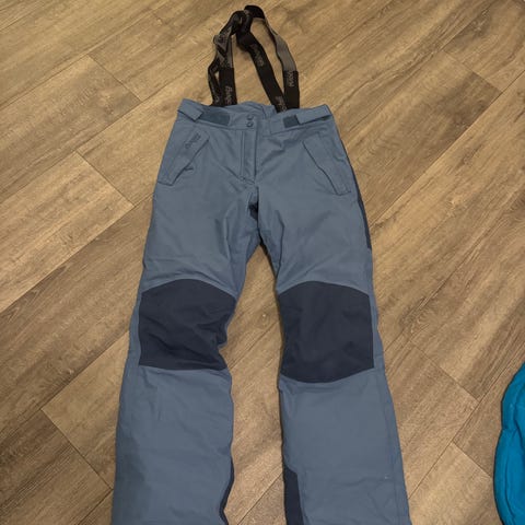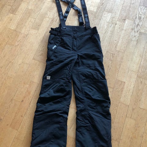 Pent brukt kvalitetsbukse fra Bergans i str. 152-158. Solid materiale som holder barna tørre. Mesh-fôr. Justerbare og avtagbare seler. Glidelås nede på beina for alpinstøvler o.l.