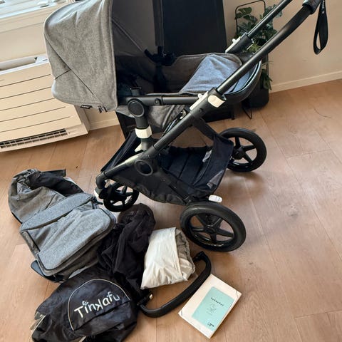 Sittdel, liggdel, myggnät och regnskydd ingår.