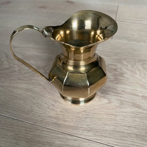 Selger meget elegant mugge i messing - perfekt for deg som vil tilføre stuen et harmonisk og elegant uttrykk.