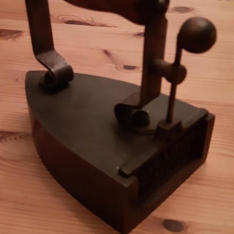 Tungt støpe gods med tre håndtak og nydelig sjarm.