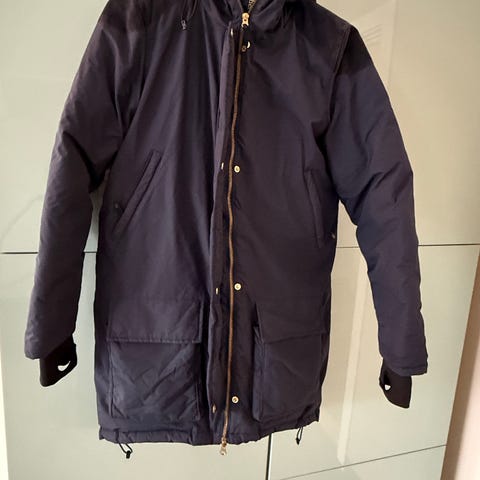 Fleischer Couture Parkas i blå farge, størrelse 38 for kvinner. Jakken har hette og er laget for å gi varme og beskyttelse mot værforhold.