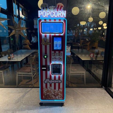Denne maskinen produserer ca 200 ltr popcorn i timen.