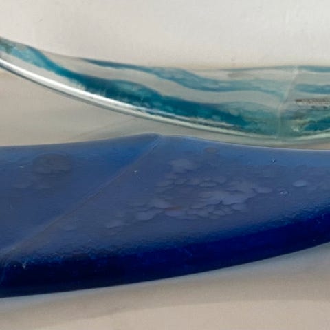 2 knivbenker i kystallglass. Håndlaget av LINDSHAMMAR /Sverige. I original eske -ikke brukt.