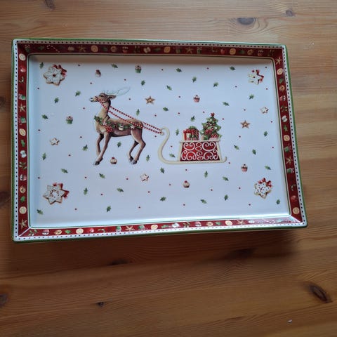 Helt nytt og ubrukt serveringsfat til jul, perfekt til småkaker / middagsservering. Måler 34,5cm fra ende til ende